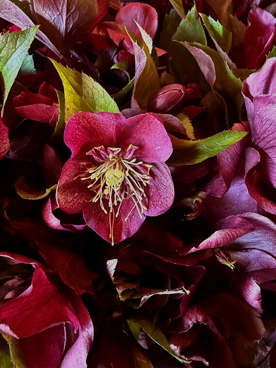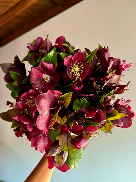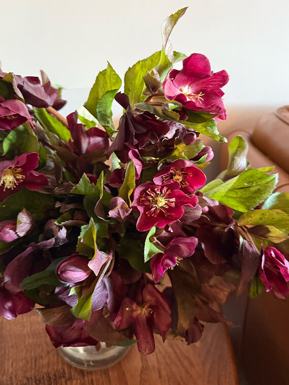 Keep your hellebores in a cool area out of direct sunlight. Change water and give a fresh trim to the stems every couple days to extend vase life.