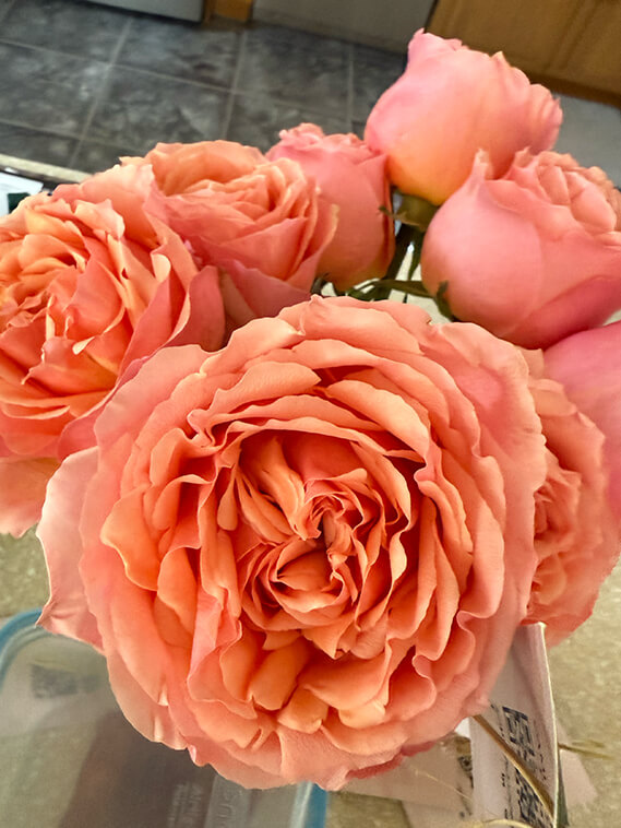 Keep your roses in a cool area out of direct sunlight. Change water and give a fresh trim to the stems every couple days to extend vase life.