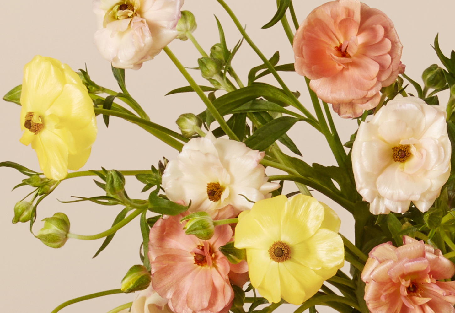 Ranunculus may arrive in bud form which provides protection during delivery and helps increase vase life.