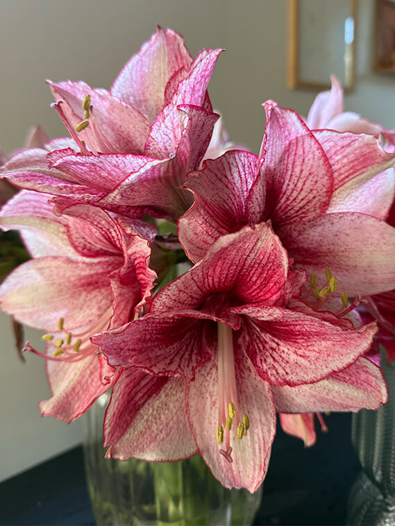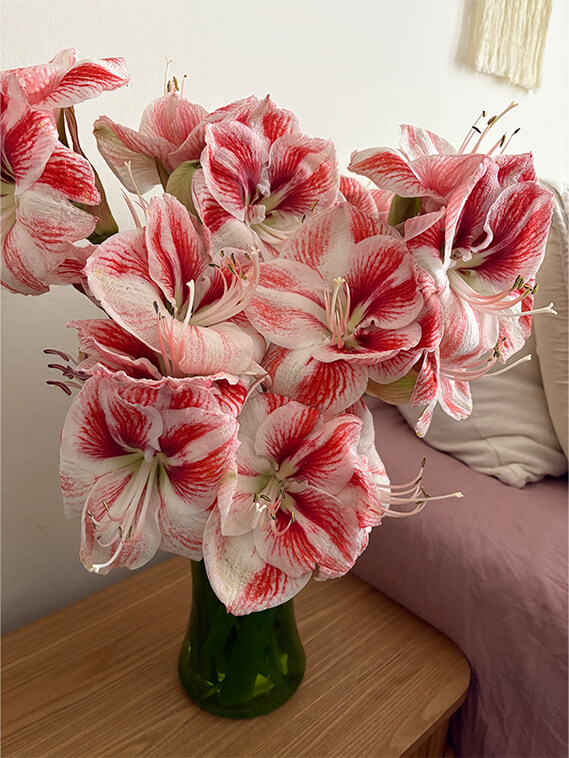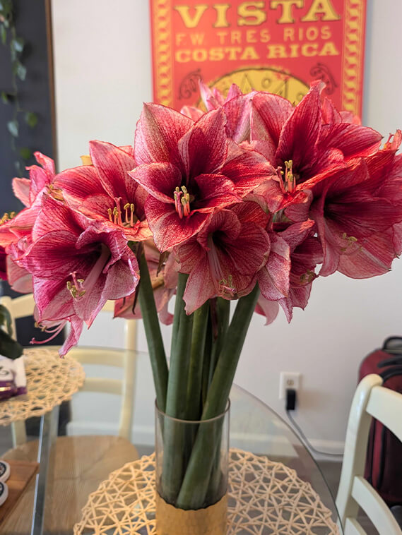 Your amaryllis stems will bloom dramatically over the next 2-3 days once hydrated. Keep them in a cool area out of direct sunlight.